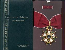Legion of Merit Commanders medal in case with ribbon bar and lapel pin